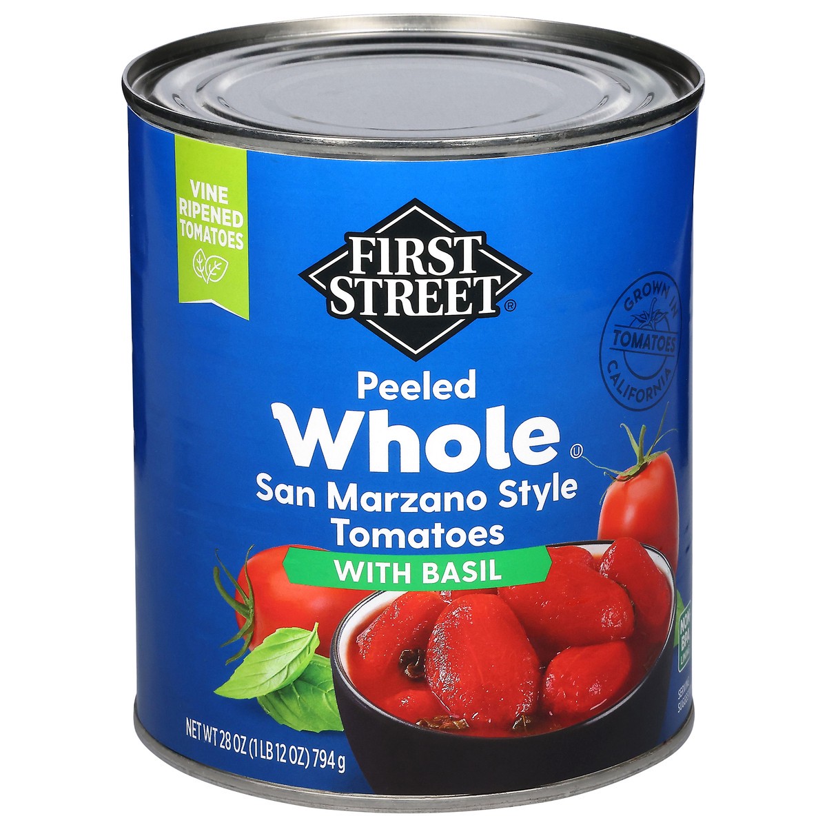 slide 3 of 4, First Street Fs/Lr Whole Peeled Pear Tomatoes With Basil, 28 oz