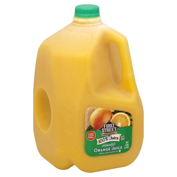 slide 1 of 1, First Street Homestyle Orange Juice - 128 oz, 128 oz