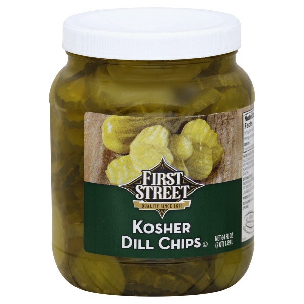 slide 1 of 1, First Street Kosher Dill Chips, 64 oz