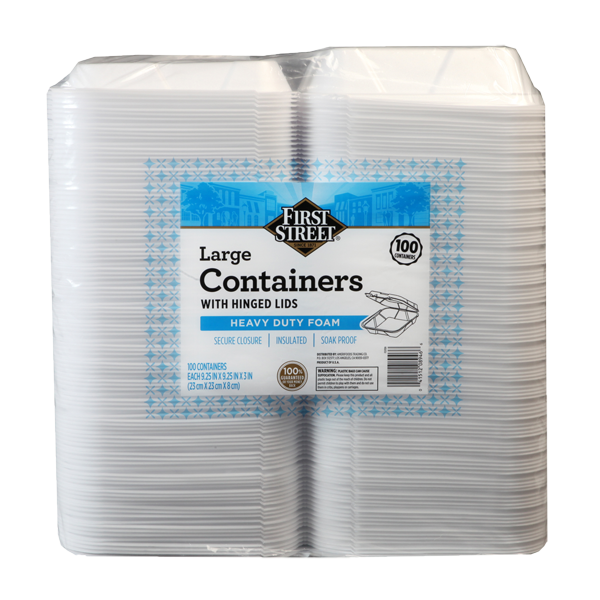 slide 6 of 6, First Street Large 1 Compartment Containers, 100 ct