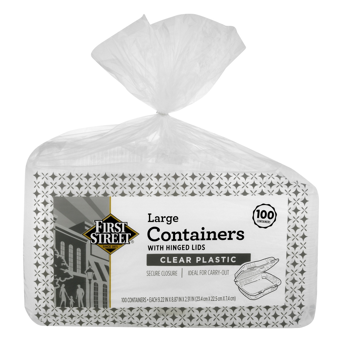 slide 1 of 1, First Street Large Clear Containers, 100 ct