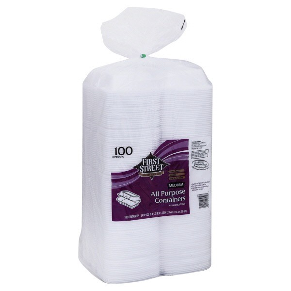 slide 1 of 1, First Street Medium All Purpose Containers, 100 ct