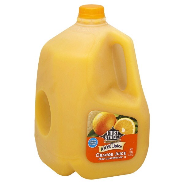 slide 1 of 1, First Street Orange Juice, 128 oz