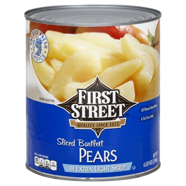 First Street Sliced Pears In Light Syrup - 106 oz, Sweet and simple. First Street Sliced Pears are canned in light syrup to preserve their tender texture and natural flavor. A convenient fruit side fo…