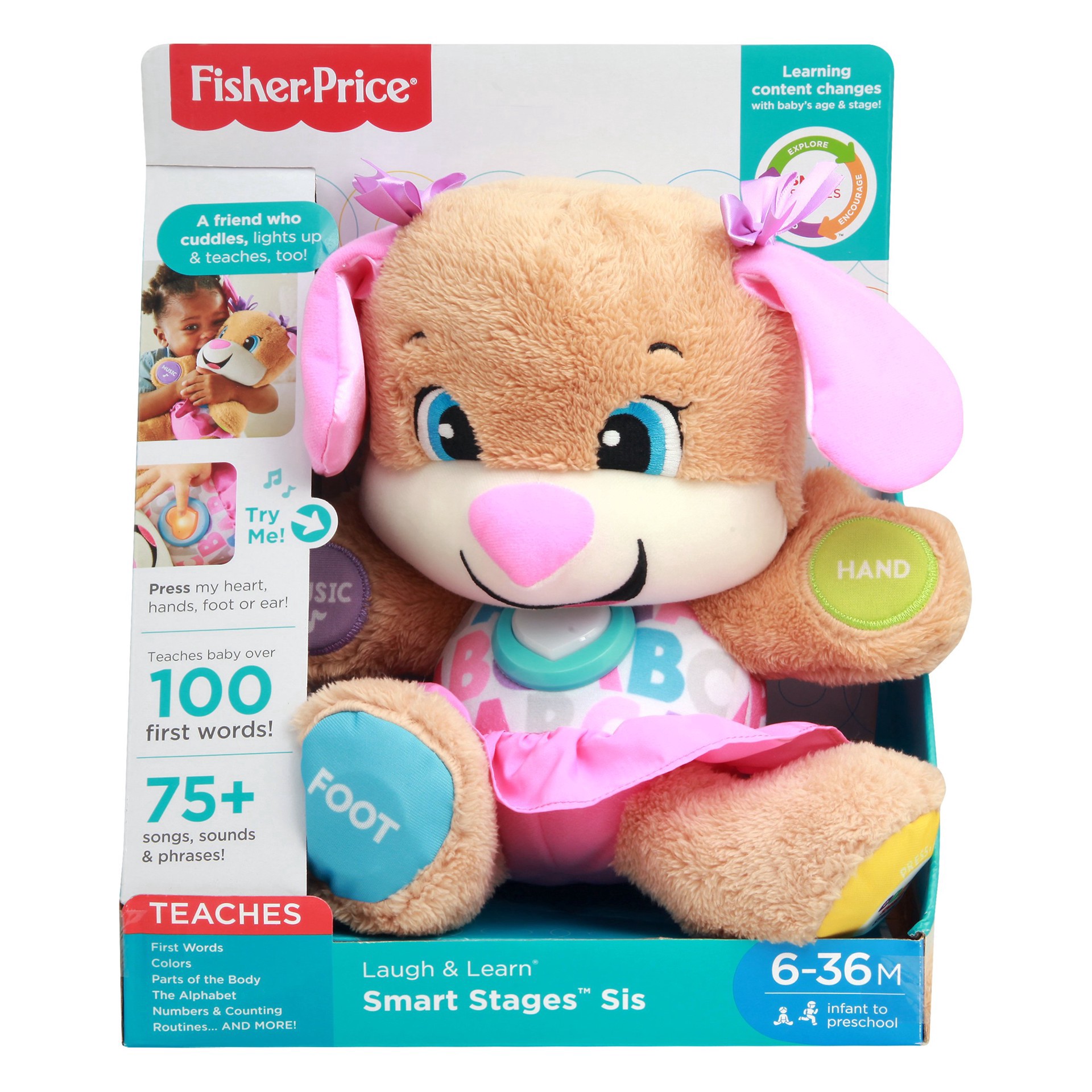 Sis is soft, cuddly, and she's ready to make sure the learning fun never ends! She responds to your baby's touch with exciting sing-along songs and phrases that introduce more than 100 first words, pa…