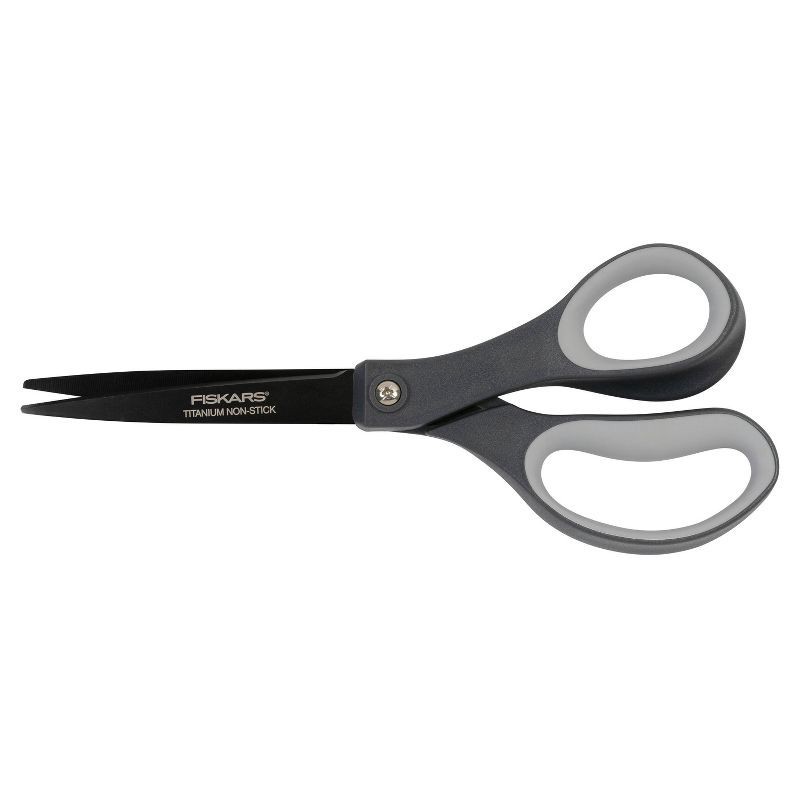 - Fiskars Everyday Non-stick Titanium Scissors with SoftGrip are ideal for cutting a wide variety of materials including paper, cardboard, tape, glue and more