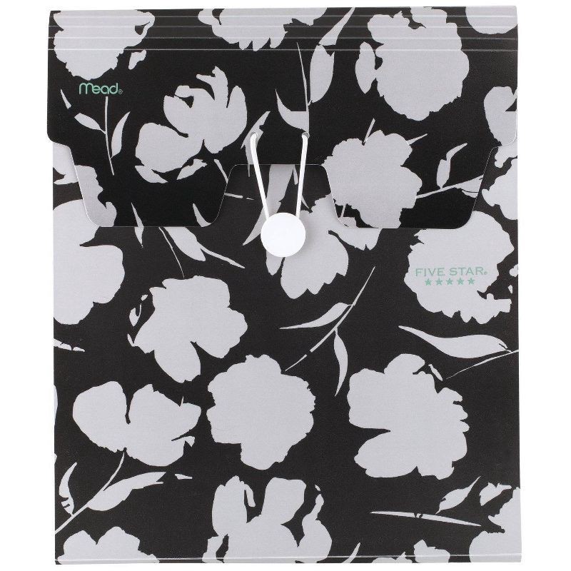 LASTS ALL YEAR. GUARANTEED!* This Five Star® 7-Pocket Vertical Expanding File features a sophisticated black and white floral silhouette design. Use the pockets to store papers and organize sheets fro…