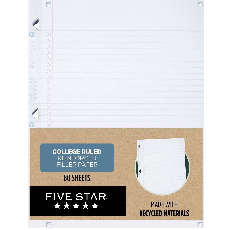 LASTS ALL YEAR. GUARANTEED!* Five Star® Recycled Reinforced Filler Paper is durable enough to last all year. Compatible with the Five Star study app, you can easily scan, study and organize notes on y…