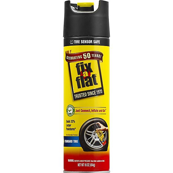 Tire sensor safe. Celebrating 50 years! Trusted since 1970. Just connect, inflate and go! Seals 33% larger punctures (Compared to previous Fix-a-Flat formula). Non-flammable formula. Repairs and infla…