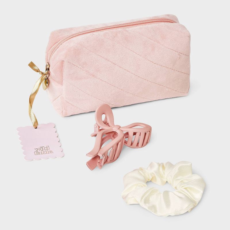 Discover the perfect blend of style and functionality with the fleece pouch bow claw clip satin twister spa set from Wild Fable. This set, in a charming pink color, includes a hair twister, claw clip,…