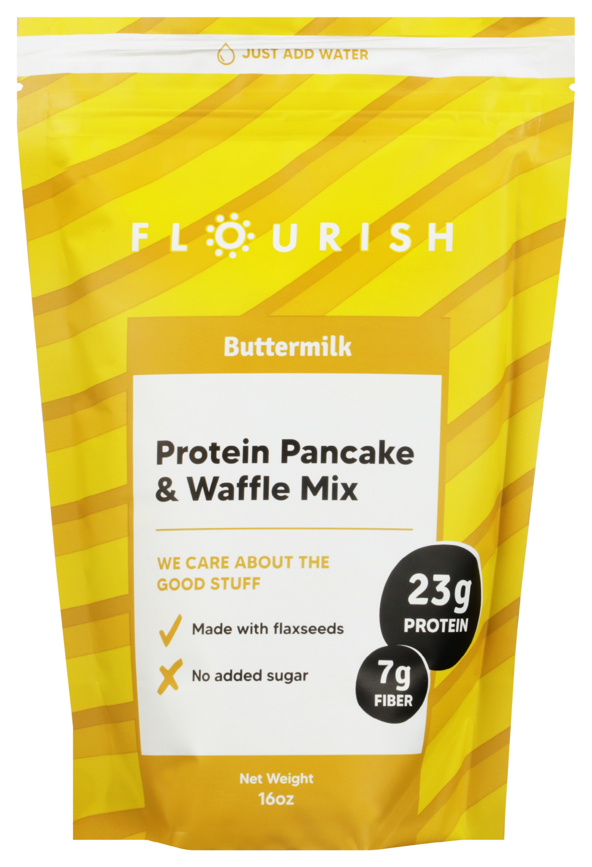Flourish Buttermilk Protein Pancake Mix is an elevated version of a timeless classic. Fortified with Flax Seed and Whey Protein, this flavor tastes as good as it is for you and its pretty good for yo…