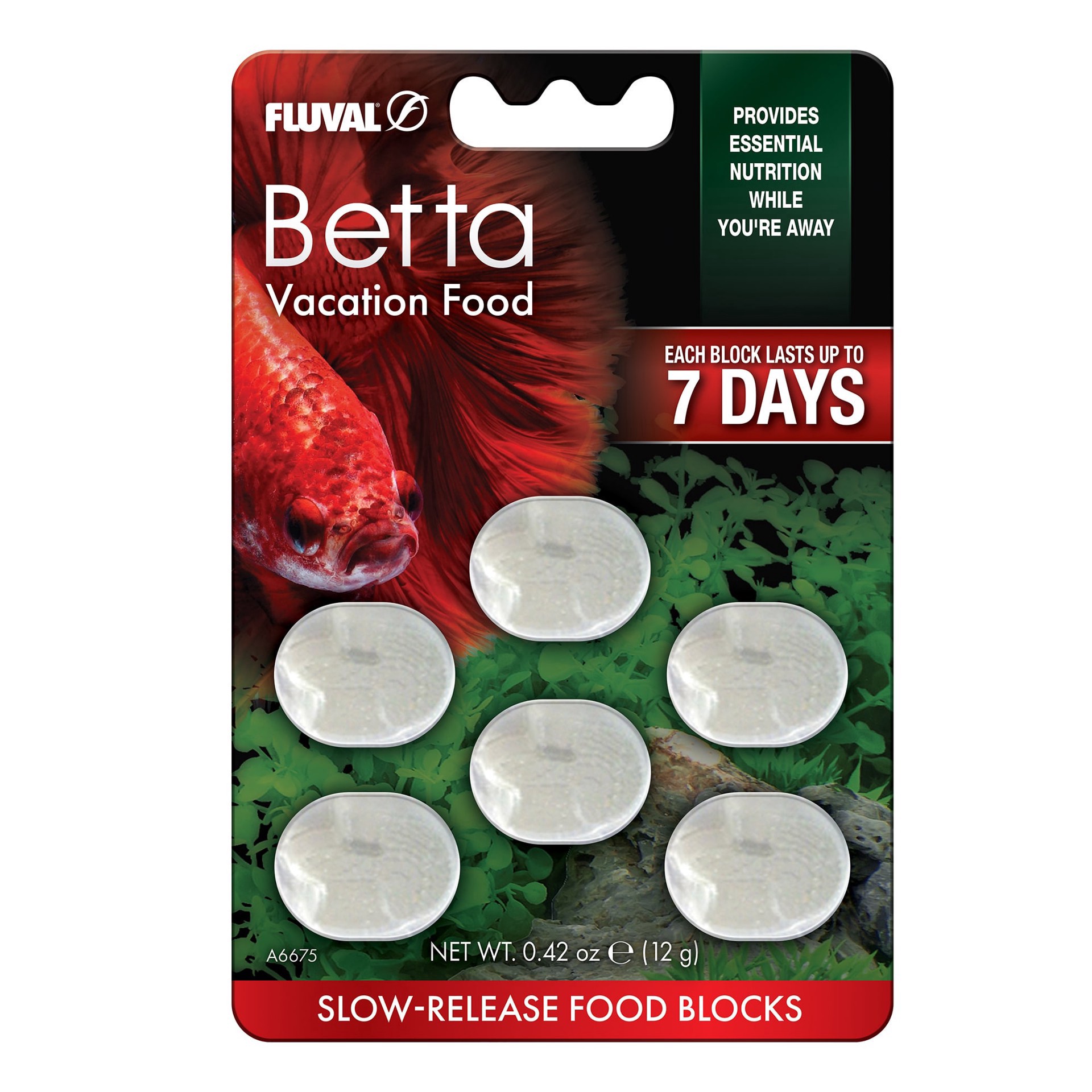 The Fluval Betta Vacation blocks are the ideal vacation food. No need to worry about your Betta if you go away. The buffet block will slowly release all essential multi-vitamins and nutrients over a p…