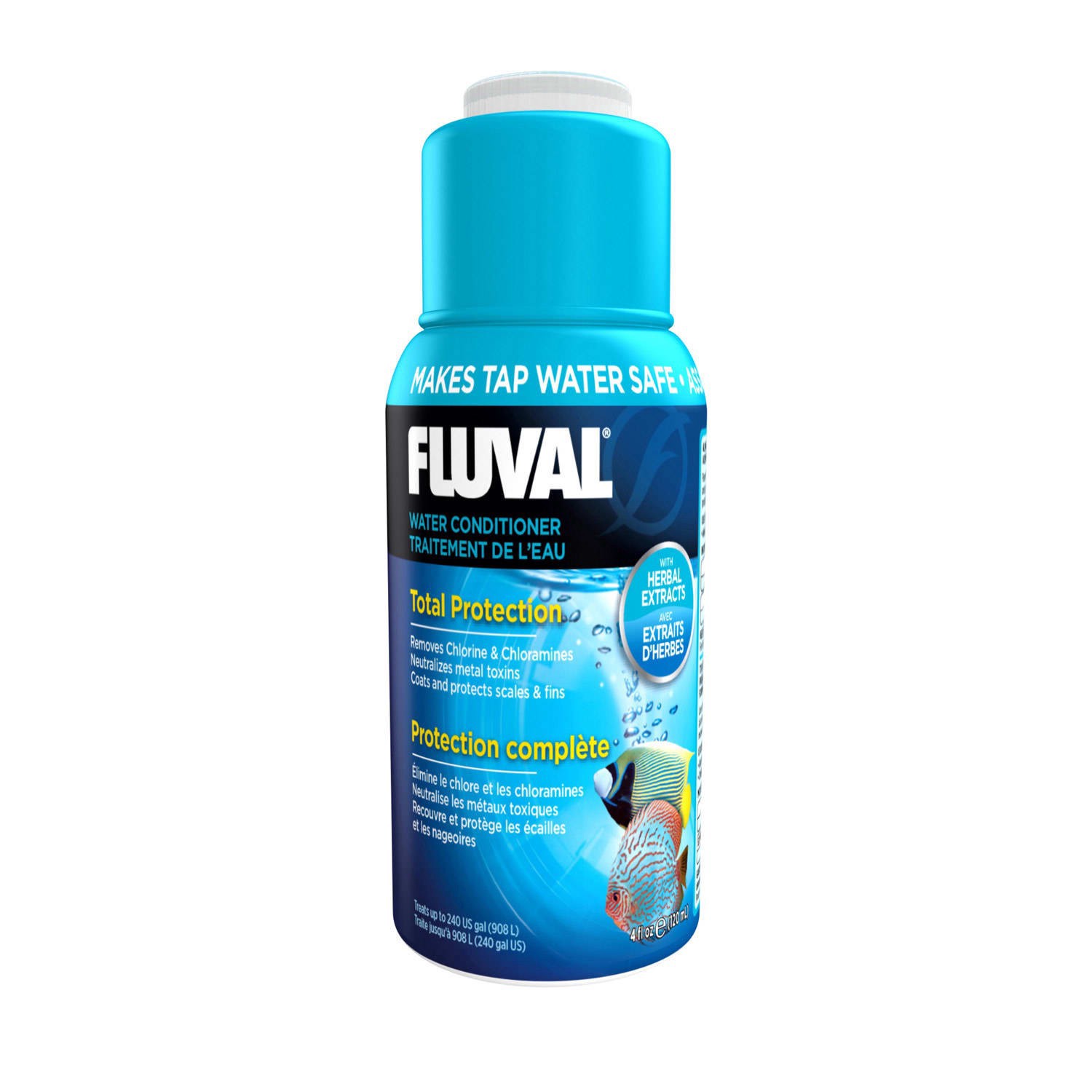 Fluval Water Conditioner makes tap water safe for tropical fish by neutralizing chlorine, chloramine and undesirable metals in aquarium water.