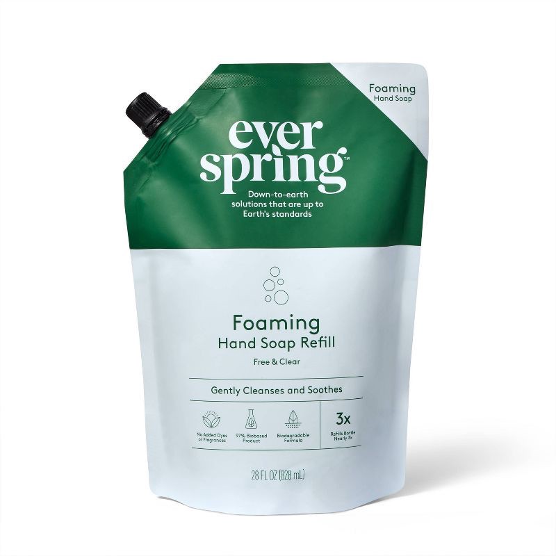 Keep your hands clean and fresh with this Free and Clear Foaming Hand Soap Refill from Everspring™. Made with a biodegradable formula with 97% biobased products, this foaming hand soap refill gently c…