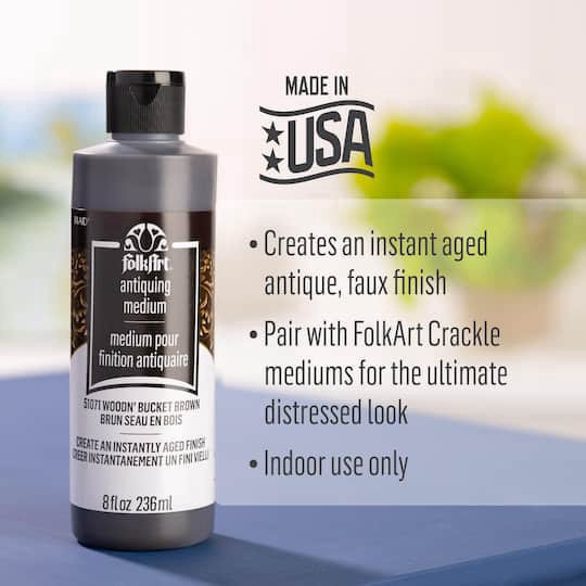 Purchase the Folk Art Woodn' Bucket Brown Antiquing Medium at Michaels. Antiquing medium to create an instantly aged and weathered finish for craft projects.. 8 fl. oz. (236 mL) . Waterbased . Nontoxi…