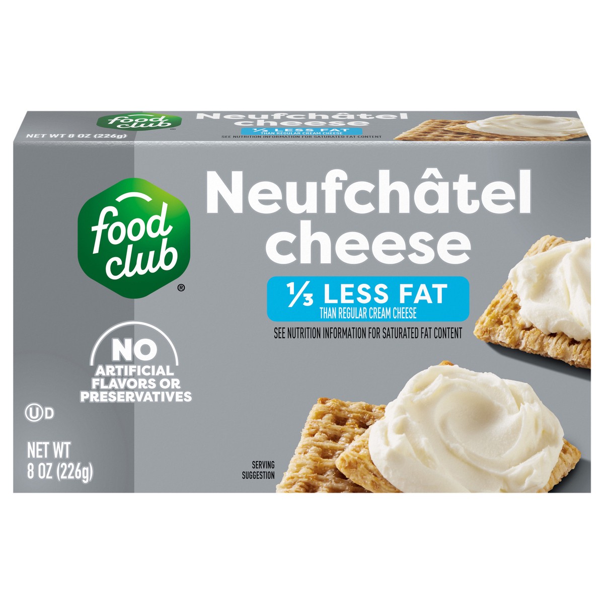 Add flavor to life. Since 1945. 1/3 less fat than regular cream cheese. 70 calories per 2 tbsp. See nutrition information for saturated fat content. www.foodclubbrand.com. Food Club Neufchatel Cheese …