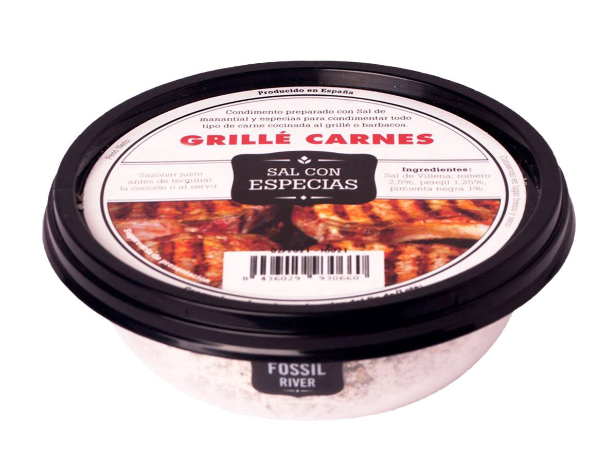 River salt with spices to season all types of meat cooked on the grill or barbecue. Season right before finishing the cooking or serving the fish. Mineral salt from underground rivers in Villena, Alic…