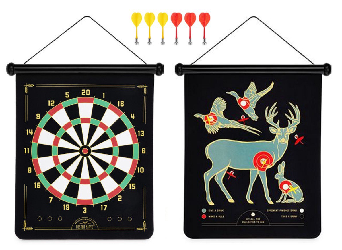 Foster & Rye Double Sided Games Set with Magnetic Dart Board and Hunting Target Bullseye Drinking Game, Hang Anywhere, Includes 6 Darts