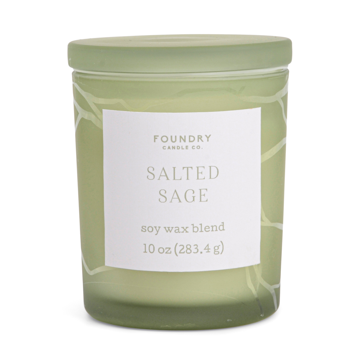 "Add this Salted Sage scented candle to your cycle of decorations. This 10 oz candle from Foundry features a frosted sage glass with negative space pattern, catching the gaze of your invited guests. F…