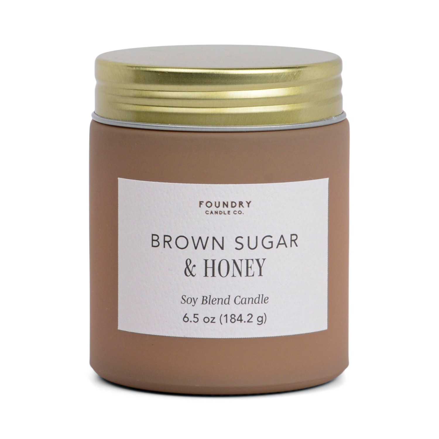 "Transform your home into a peaceful retreat with a Brown Sugar & Honey candle from Foundry. Every 6.5 oz candle is specially designed with a frosted taupe glass and screw on gold lid, easily matching…