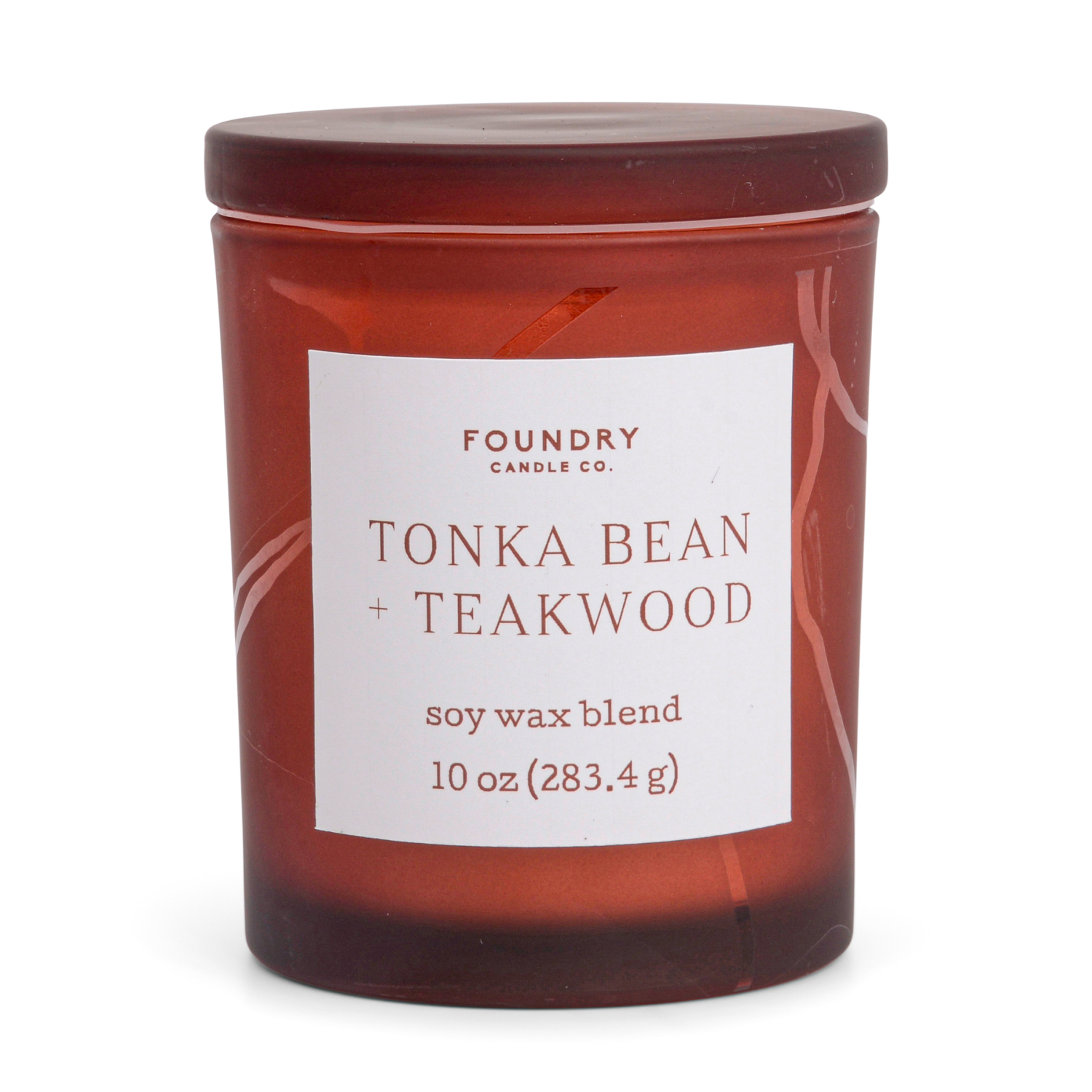 "Add this Tonka Bean + Teakwood scented candle to your cycle of decorations. This 10 oz candle