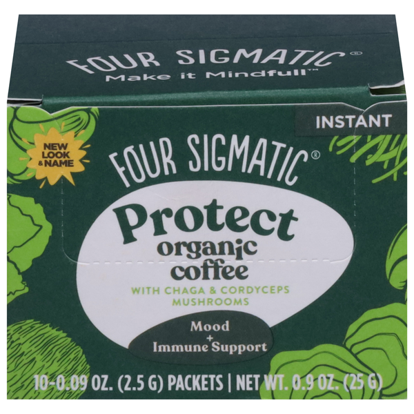 slide 1 of 1, Four Sigmatic Coffee, with Chaga & Cordyceps Mushrooms, Organic, Instant, Protect, 0.09 oz