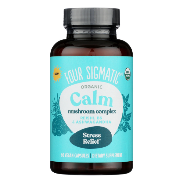 Dietary Supplement. Reishi, B6 & Ashwagandha. USDA Organic. Gluten free. Certified Organic by CCOF. US-ORG-006. Caffeine free. New. Stress relief. Four sigmatic calm organic capsules help support: Sta…