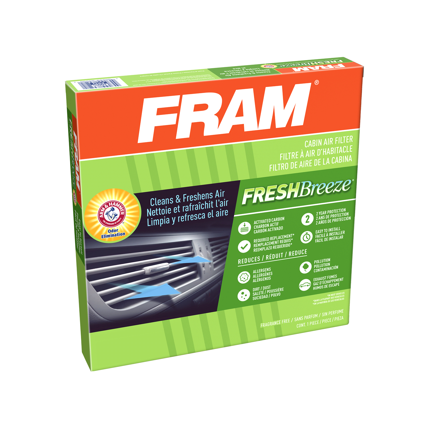 FRAM Fresh Breeze Cabin Air Filter is the only cabin air filter that uses the natural deoderizing qualities of Arm Hammer baking soda. Helps absorb odors and freshens air. Filters out 98 of road dust…