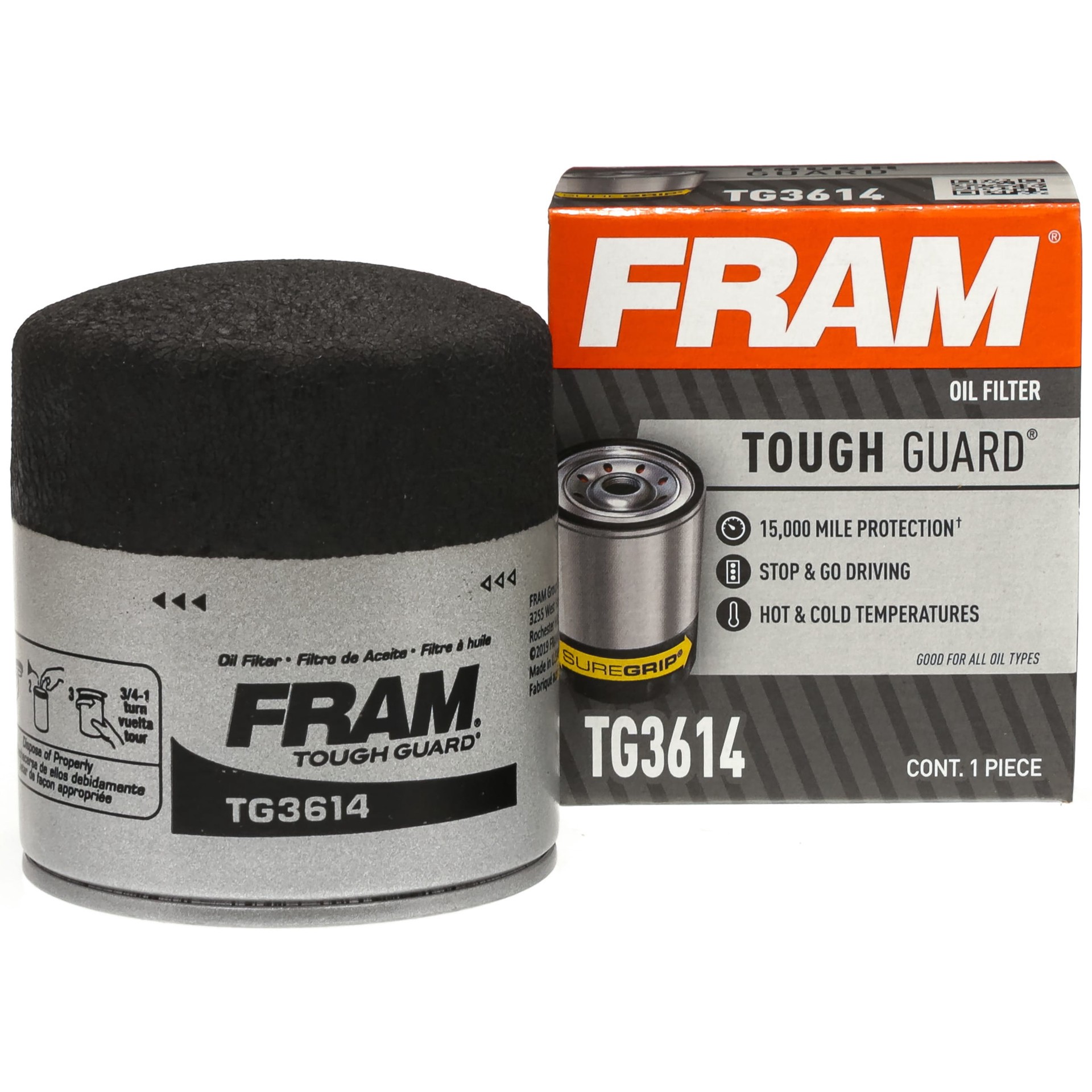 FRAM Tough Guard TG3614 Oil Filter lasts up to 15,000 miles and provides 99% filtration efficiency and ideal protection for drivers who push their vehicles to the extreme.. Synthetic fiber/cellulose b…