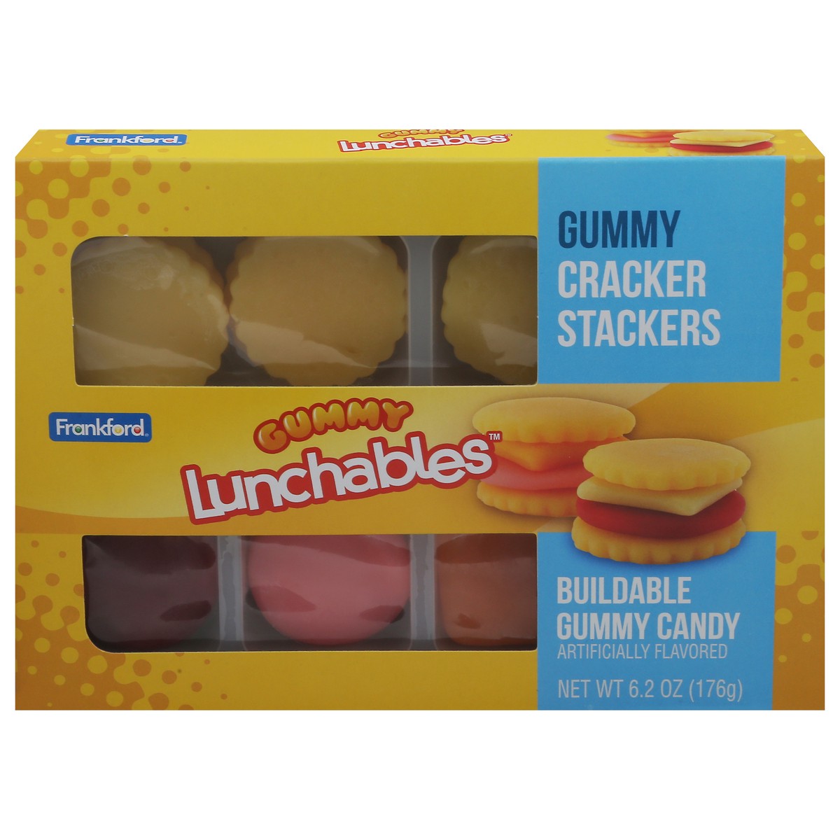 Iconic Lunchables are here with a whole new twist, as fruit flavored gummy candy! Each Cracker Stackers Set features eight gummy crackers and two “slices” each of gummy pepperoni, gummy ham, gummy Swi…