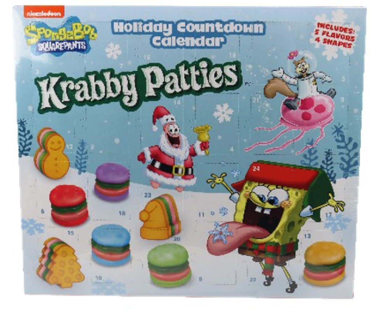 Spongebob Squarepants Advent Calendar with Krabby Patty treats for each day of the countdown to Christmas.