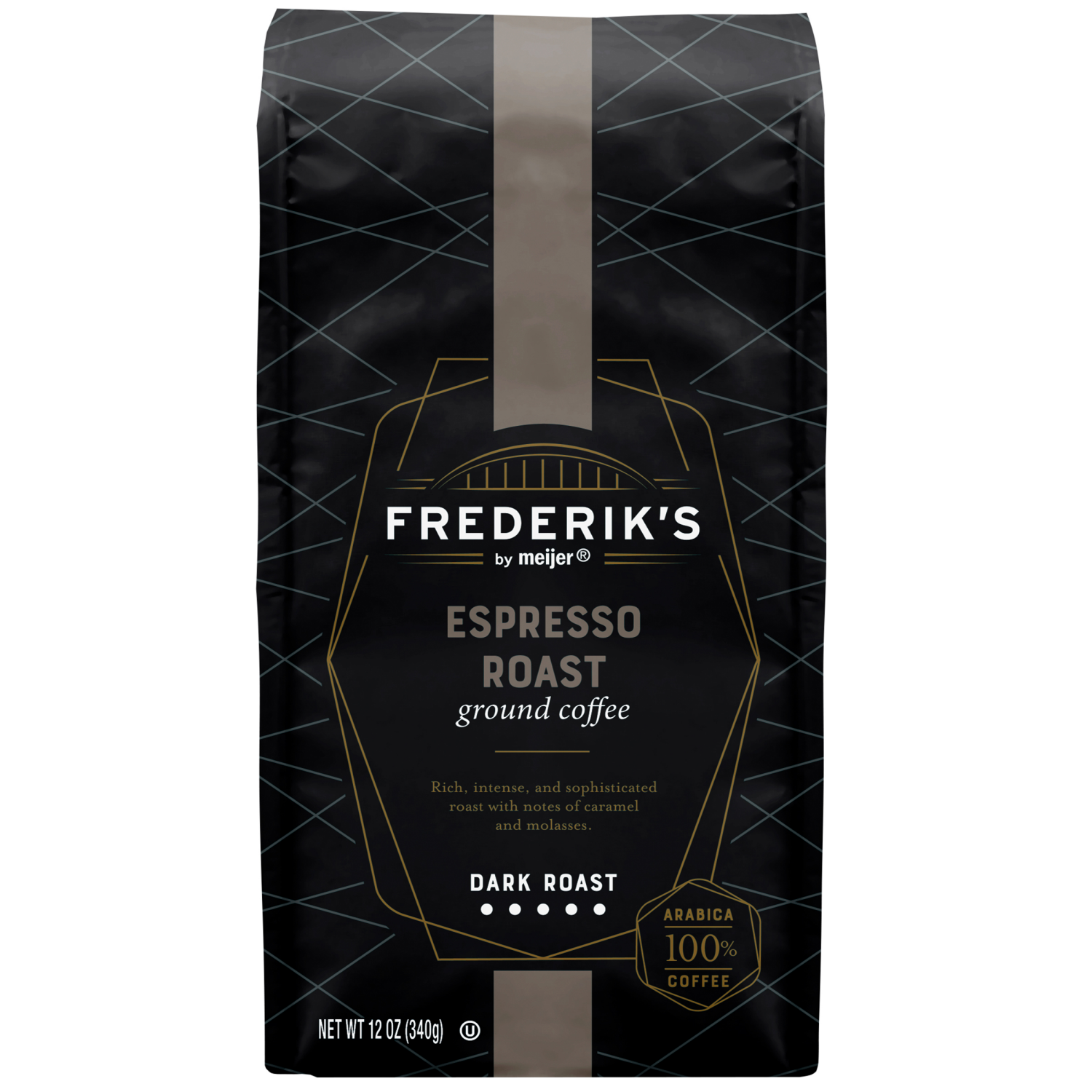Frederik's by Meijer Espresso Roast Ground Coffee is a dark roast with a rich, intense flavor and notes of caramel and molasses. Made from 100% Arabica beans sourced from premier growing regions aroun…