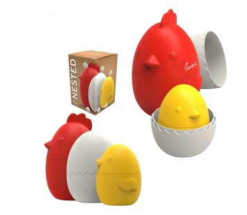 Make your culinary adventures more eggciting with these fun nesting measuring cups! This set consists of six charming measuring cups that all fit together until you need them. Open the mother hen to r…