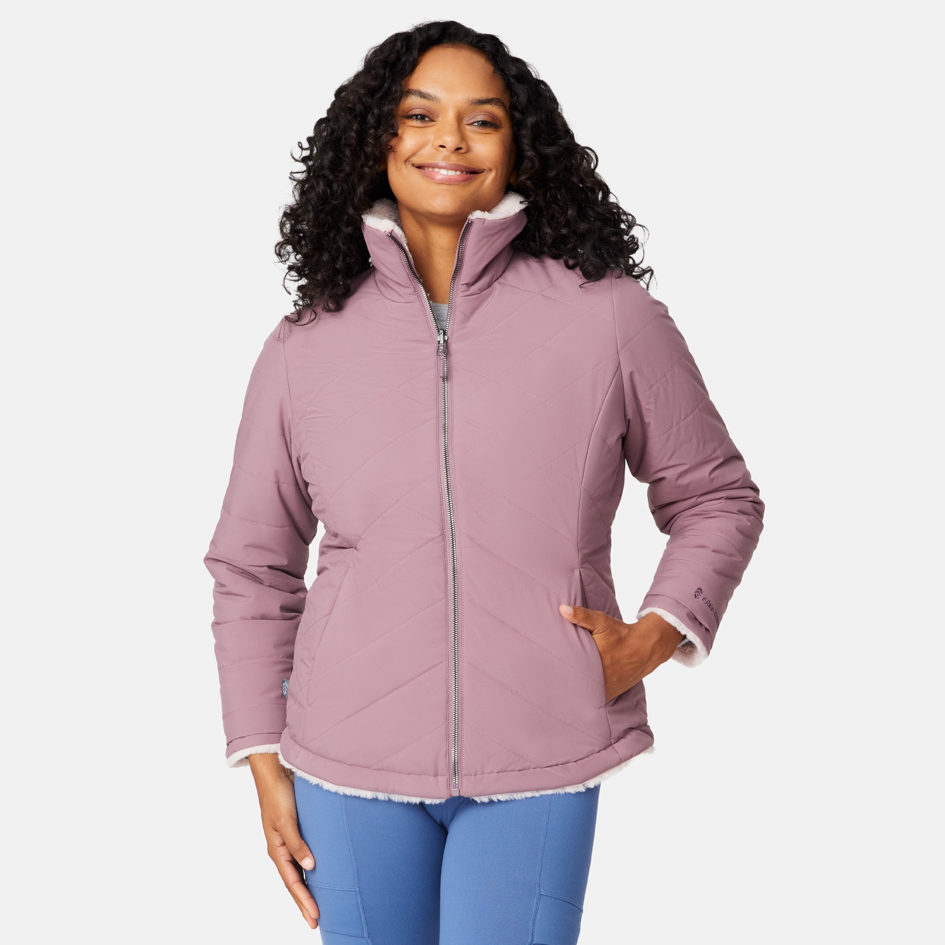The ultimate style chameleon - this on-trend reversible jacket is like having two coats in one. Wind resistant side offers a sleek quilted look with diamond stitching detail. Reverses to our ultra-coz…