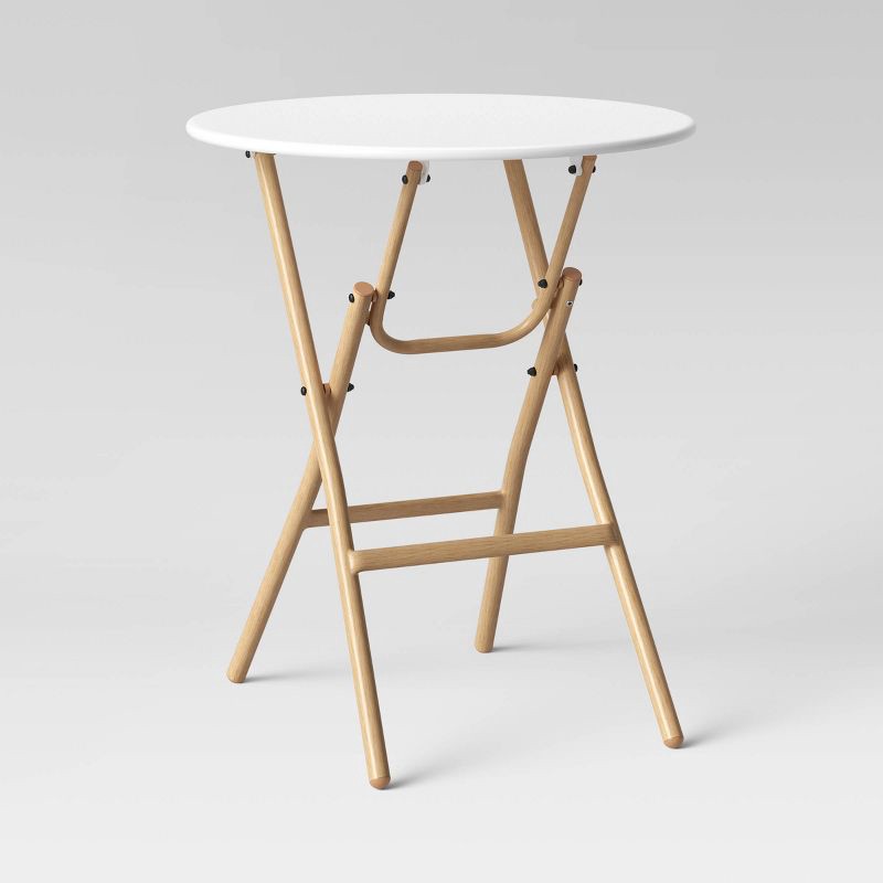 Add a touch of French cafe style to your decor with this French Cafe Folding Patio Bistro Table from Threshold™. This round bistro table features a white top over beige frame, adding an elegant look t…