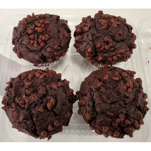 slide 1 of 1, Fresh Baked Muffins, Double Chocolate, 4 Count, 14 oz