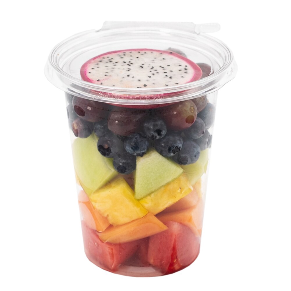 Delicious and nutritious snack is full of a variety of fresh fruits, including watermelon, cantaloupe, pineapple, honeydew, blueberries, red grapes, and dragon fruit. Enjoy the sweet and juicy taste o…