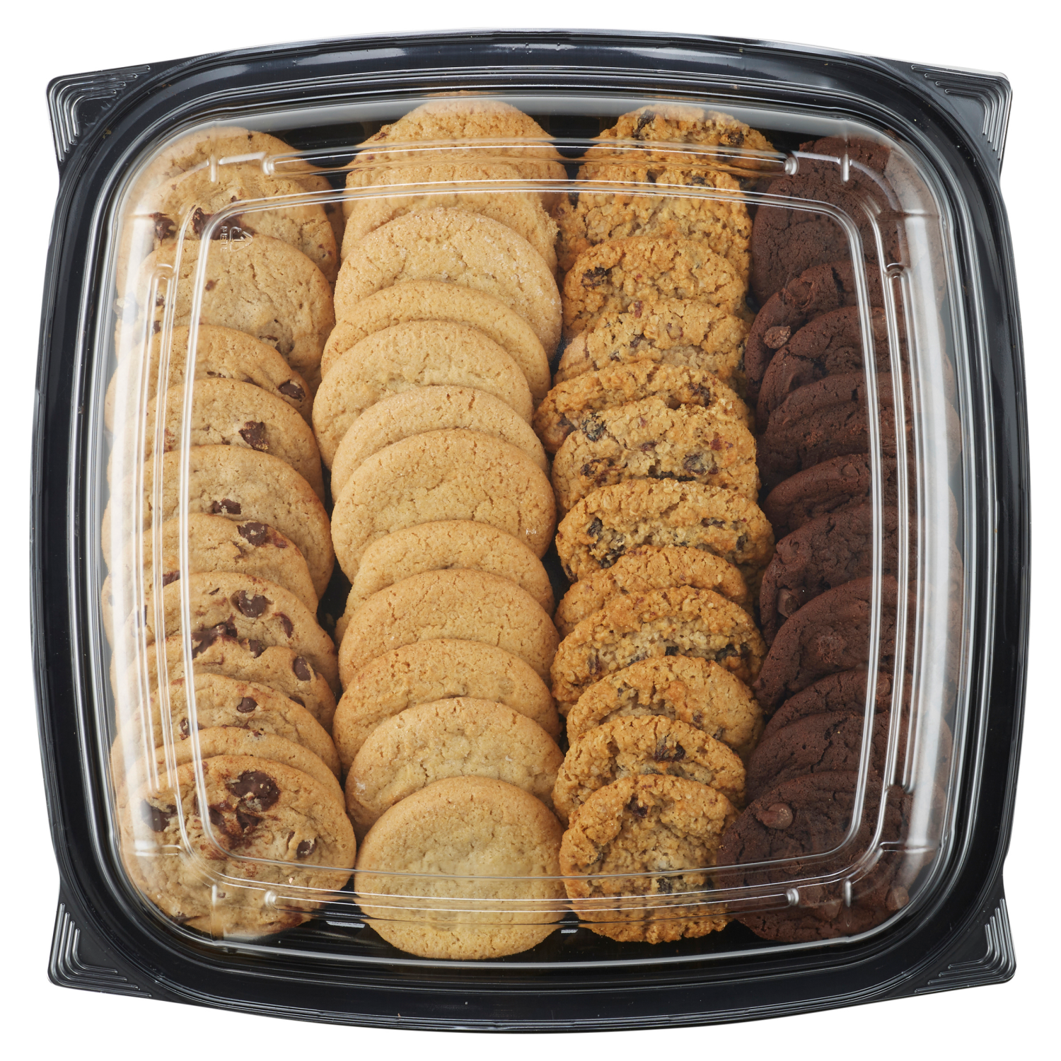 To satisfy every sweet tooth, this tray features fresh-baked chocolate chip, oatmeal raisin, sugar and double chocolate chip cookies. This option is great for tailgating, office parties, family gathe…