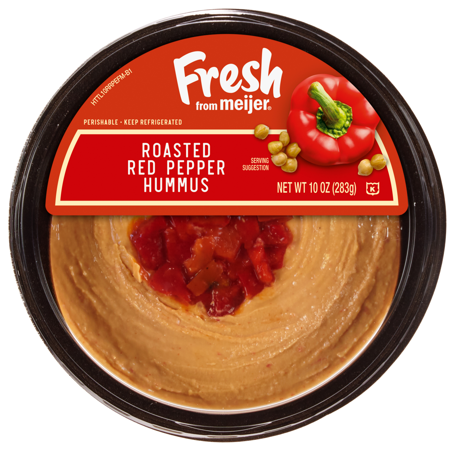 Every taste of Fresh from Meijer Roasted Red Pepper Hummus is a magnificent matrimony of tasty chickpeas, red bell peppers, garlic and onion. Enjoy its rich flavors by spreading it on your wraps, dipp…