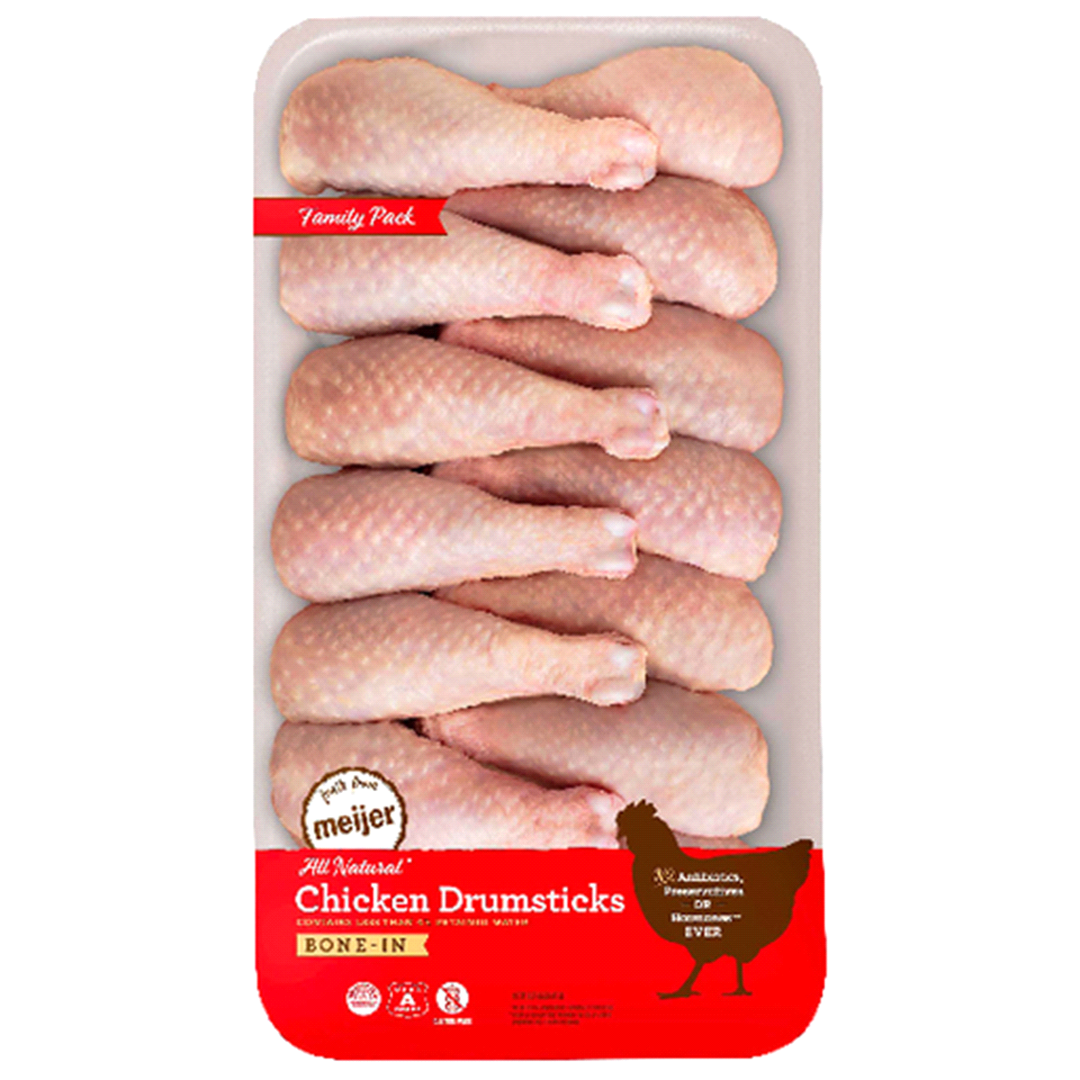 Perdue Meijer Bone-In Chicken Drumsticks 100% All Natural, Family Pack