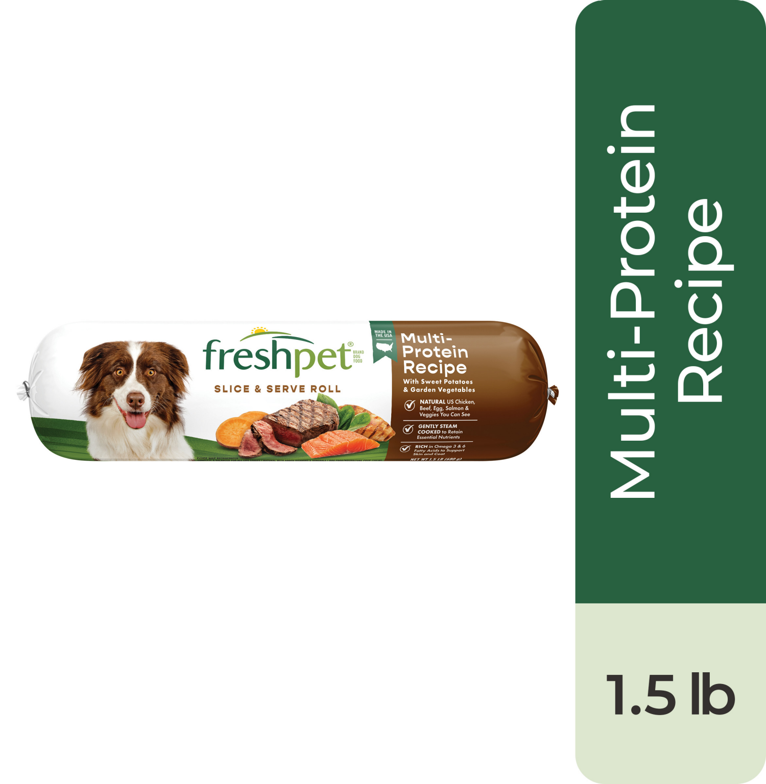 Calorie Content (Calculated): Metabolizable Energy (ME) 1,210 kcal/kg, 275 kcal/ 1/2 lb. Freshpet Select Multi-Protein Chicken, Beef, Egg & Salmon Recipe with Sweet Potatoes & Garden Vegetables is for…