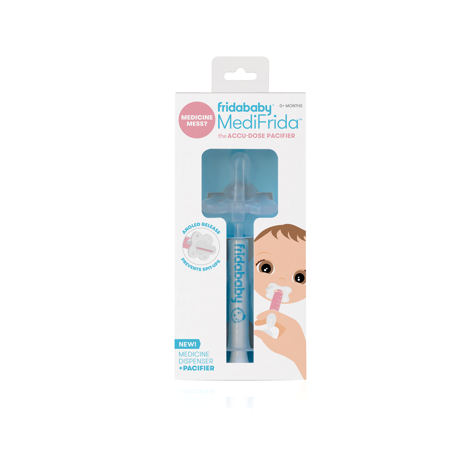 0+ months. The accu-dose pacifier. Medicine mess? Bypass taste buds. Prevent spit-ups. Features markings for common medicine doses and works with all standard oral syringes. Same familiar paci shape u…