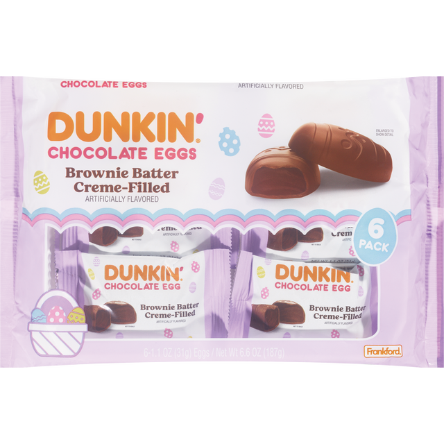 Dunkin' but make it Easter! Our Dunkin' Brownie Batter Crème Eggs are made of delicious milk chocolate and filled with a gooey, Brownie Batter donut, just like the real thing! Crack open the fun and i…