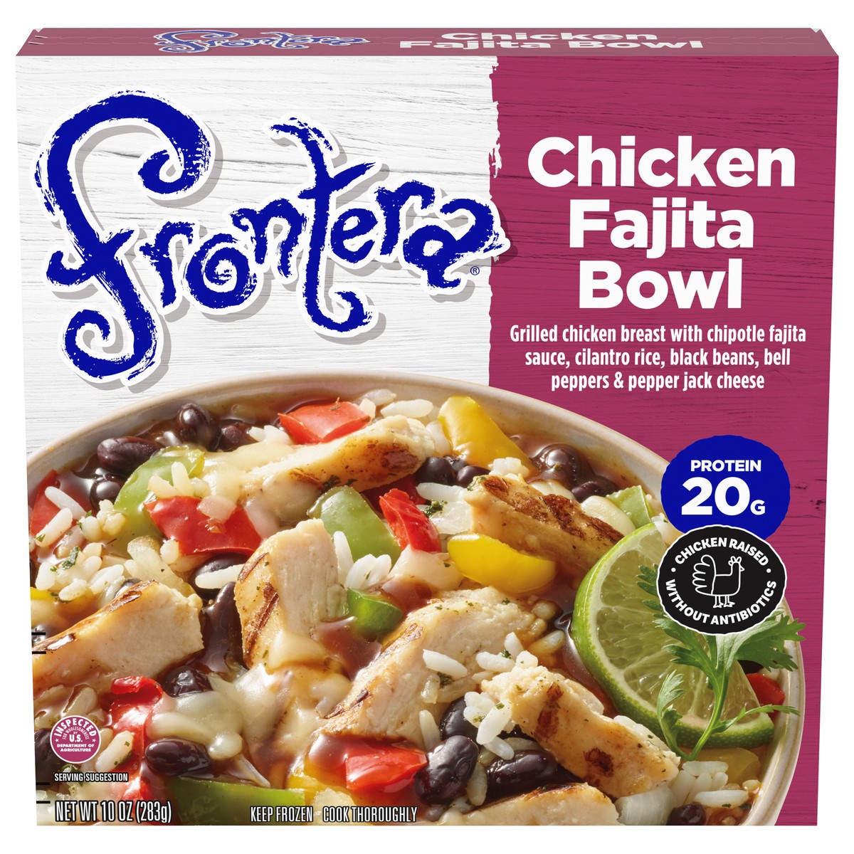 Add some sizzle to your day with a Frontera Chicken Fajita Bowl Frozen Microwave Meal. Grilled chicken breast, chipotle fajita sauce, cilantro rice, black beans, bell peppers and pepper jack cheese co…