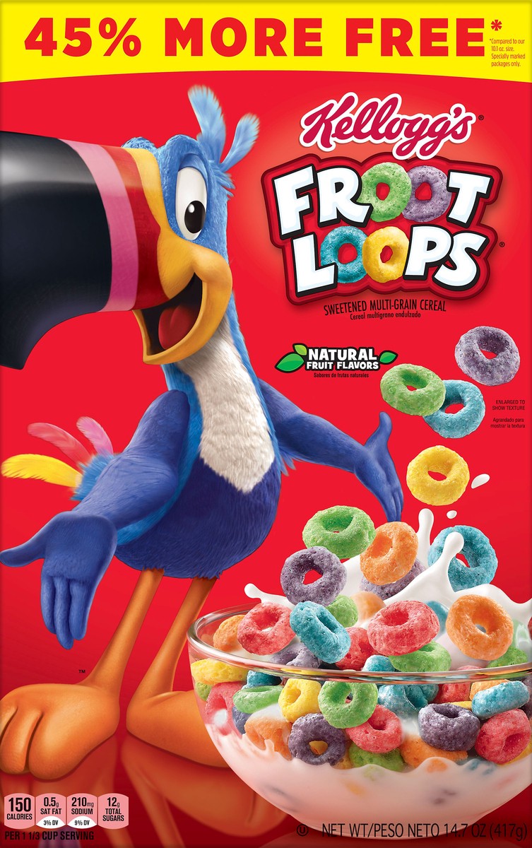 Made with grains as 1st ingredient. Natural fruit flavors. Per 1-1/3 Cup Serving: 150 calories; 0.5 g sat fat (3% DV); 210 mg sodium (9% DV); 12 g total sugars. Contains a bioengineered food ingredien…