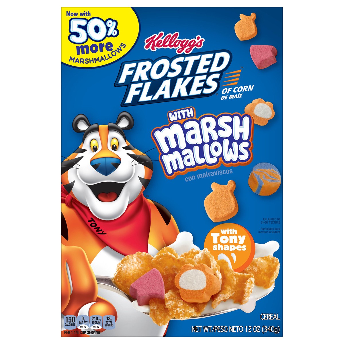 Now with 50% more marshmallows. Of corn. With tony shapes. Tony. Power paw. Sporty scarf. What makes the marshmallows gr-r-reat? Fun Tony shapes. Sweet swirl. Tony the Tiger. The official cereal of to…