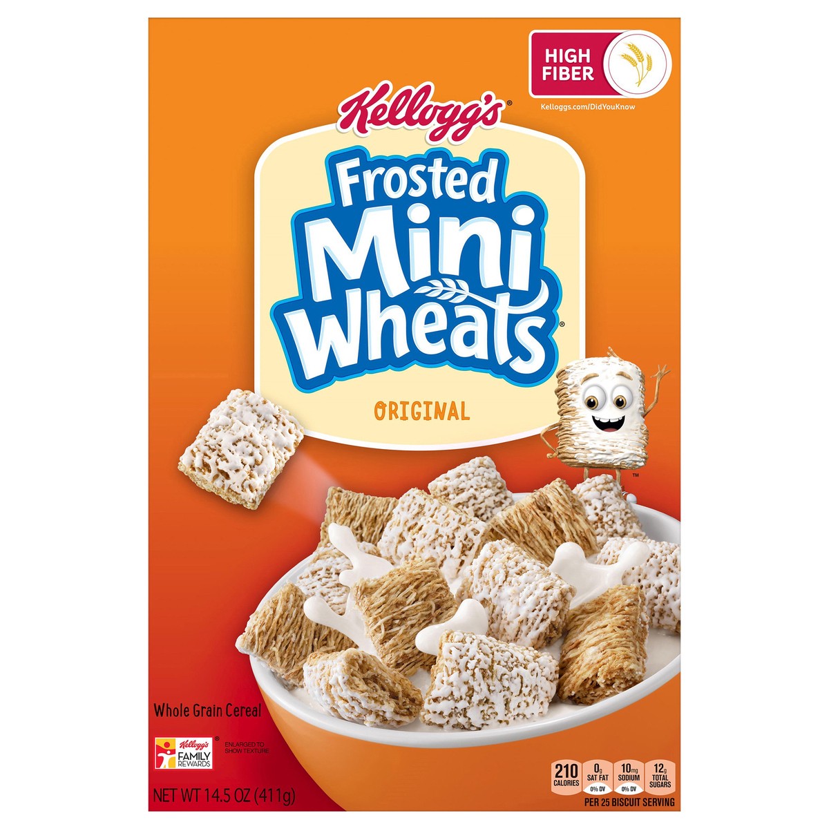 Seize the day with Kellogg's Frosted Mini Wheats breakfast cereal, the classic whole grain biscuits that deliver a big crunch and satisfying sweet taste. Includes 1, 14.5-ounce box of Frosted Mini Whe…