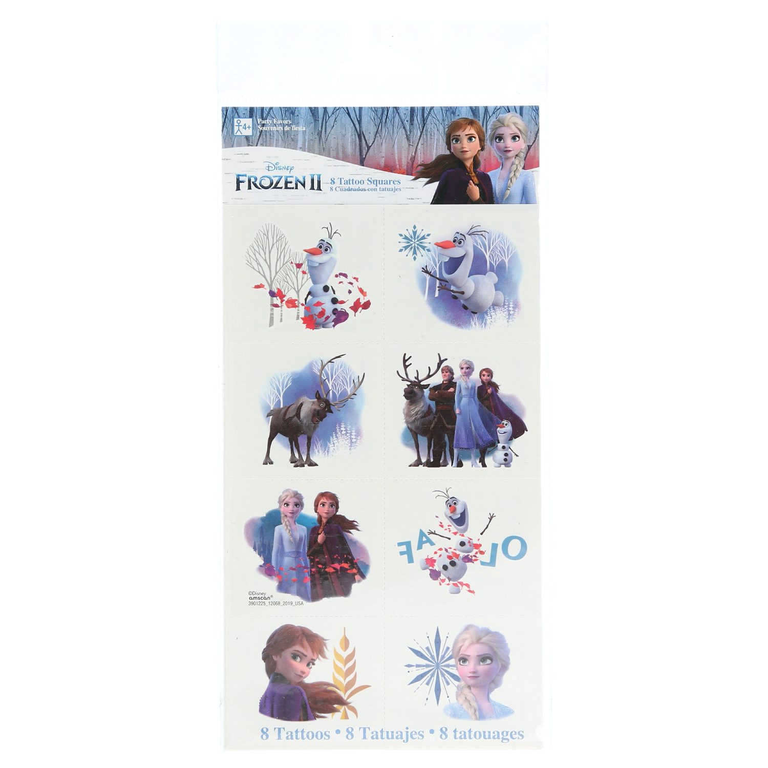 Fun Frozen 2 Tattoos. These temporary tattoos feature Anna, Elsa, Kristoff, Olaf and Sven in nature scenes. Great party favors