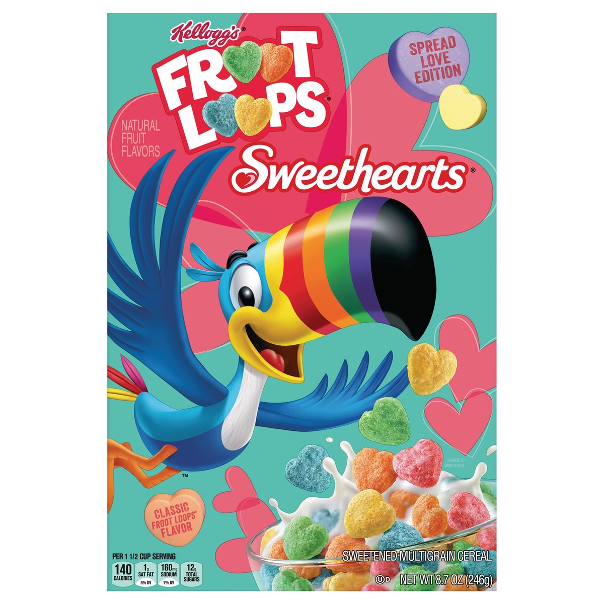 Follow your nose to colorful, heart-shaped cereal bursting with the sweet, fruity flavor you're sure to love. Includes 1, 8.7-ounce box of Limited Edition Kellogg''s Froot Loops Sweethearts, the sweet…
