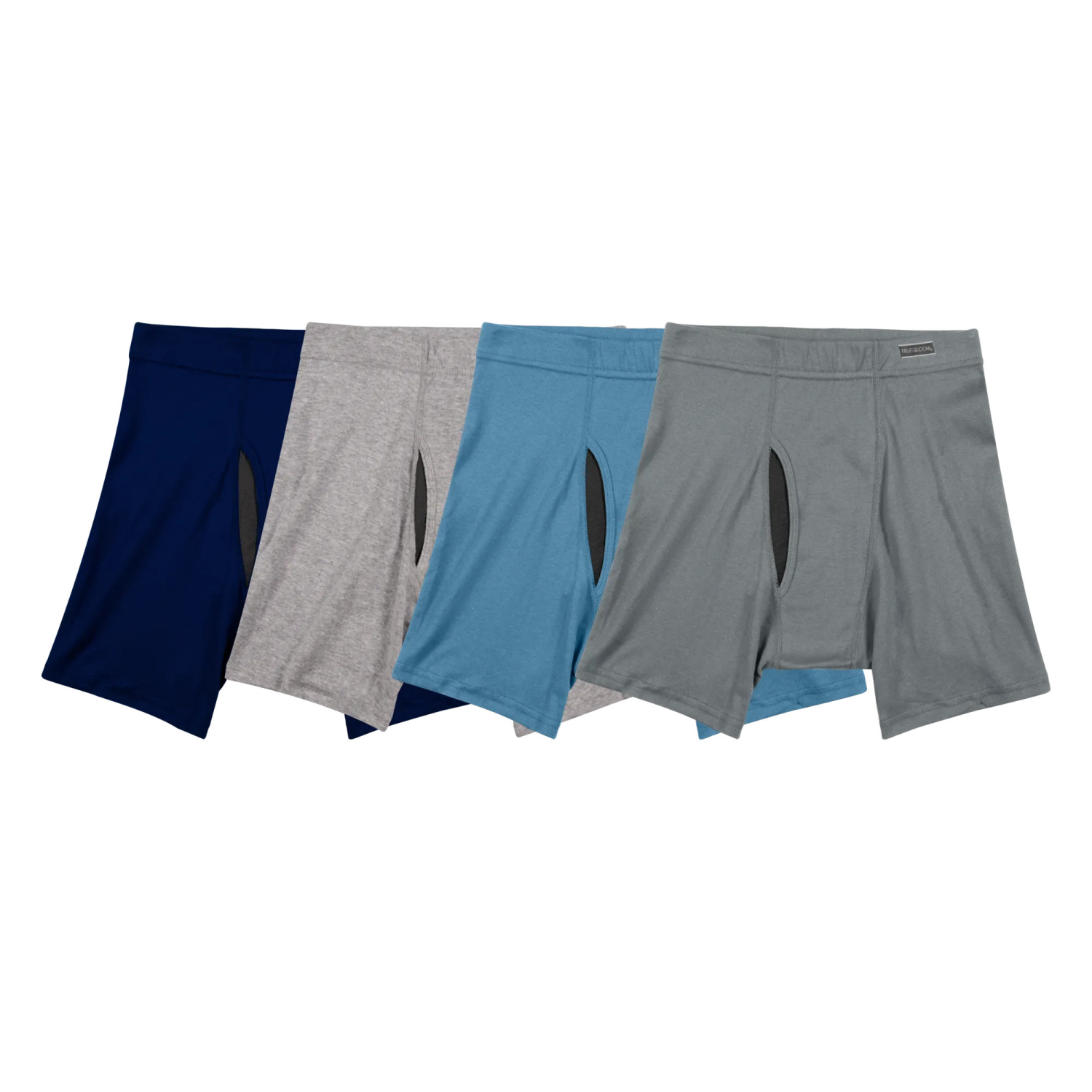 Get ready for your day with the 4-Pack CoolZone Boxer Briefs from Fruit of the Loom. These men's boxer briefs are made from 100% cotton fabric that feels soft against your skin and feature a breathabl…